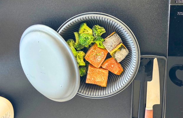 (私はマーナのザルボウルのセットを愛用。ボウルにお水を1cmほど入れて、ザルに冷凍野菜を置いて、蓋してチン。ラップも不要で野菜の水分が抜けてしまうことなく、蒸し野菜が手軽にできます)