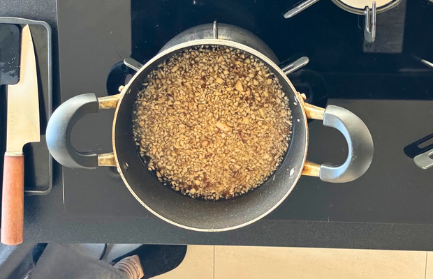 キノコ類をフードプロセッサーに入れてみじん切りに。