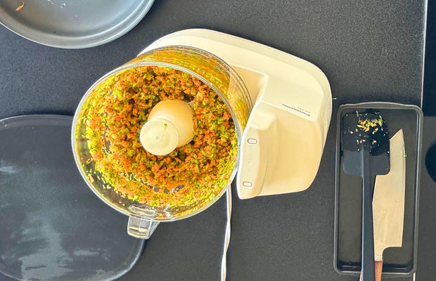 ここからは、フードプロセッサーを使ってお野菜をひたすらカットしていきます。