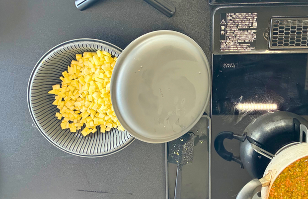 かぼちゃは煮ると溶けてしまうので、プロセッサーで細かくする必要はありません。