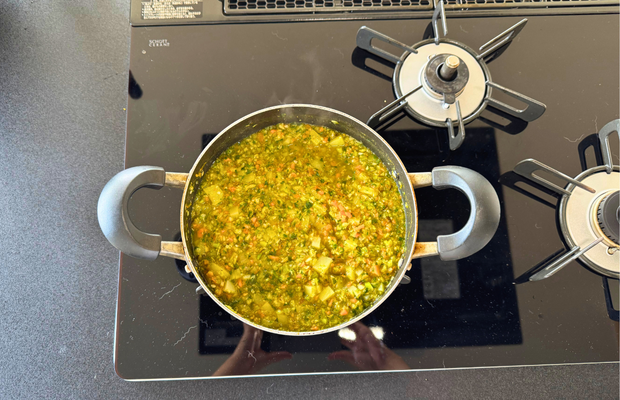 ※お野菜からたくさん水分が出るので充分な場合がほとんどですが、明らかに水気が少ない場合は、材料がひたひたになる程度の水を追加します。